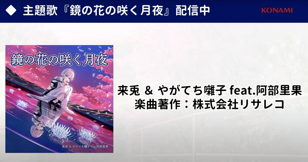 主題歌『鏡の花の咲く月夜』については、来兎さんが阿部さんのストレートに伝わる声質からインスピレーションを受け、強く響く音を目指して制作したとのこと。和風伝奇という不思議な出来事が混ざり合う不思議な雰囲気を見事に表現した楽曲となっているので、音の響きや歌詞などに注目しつつ、じっくりと聞いてみてほしい。