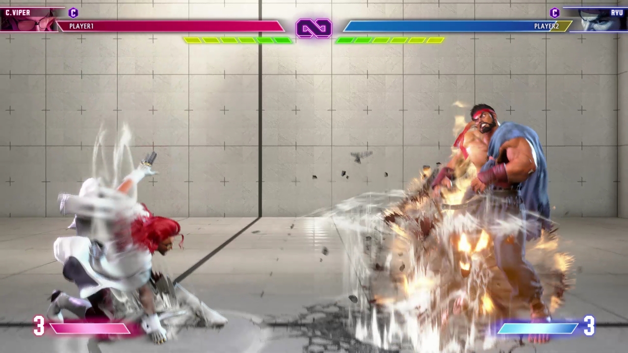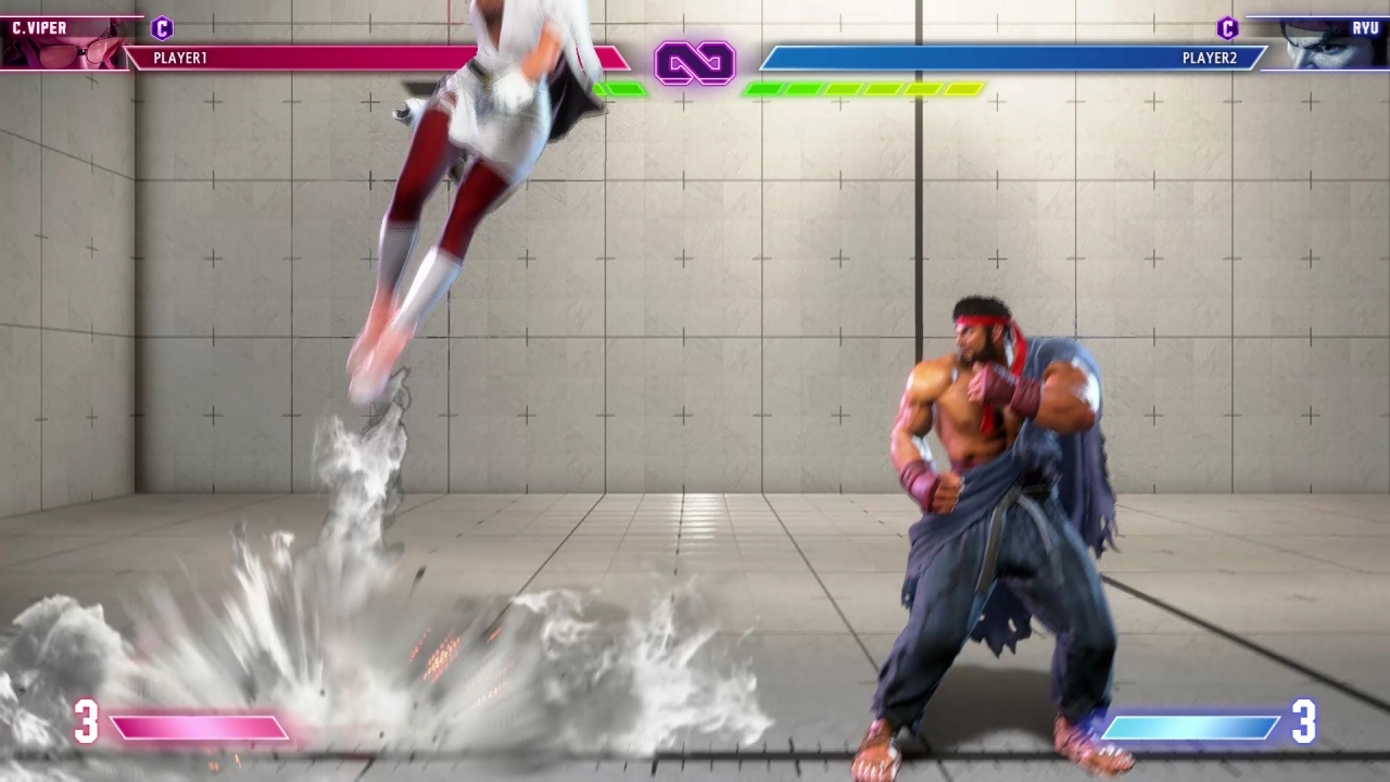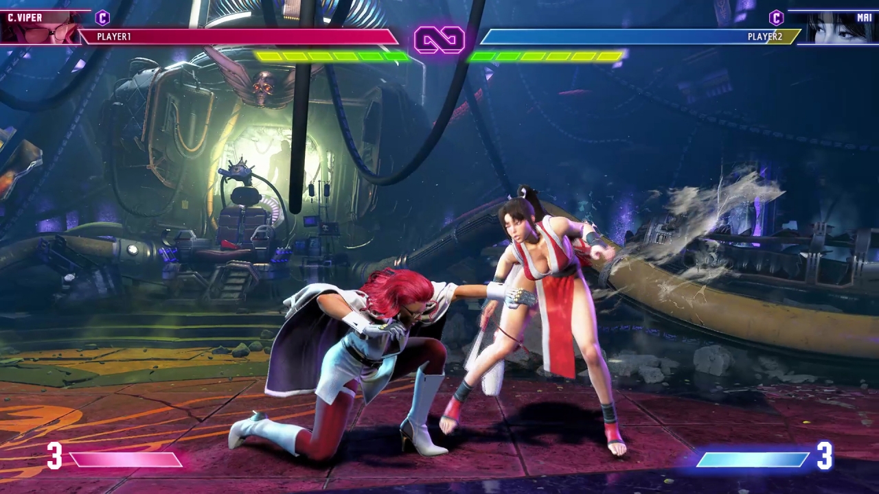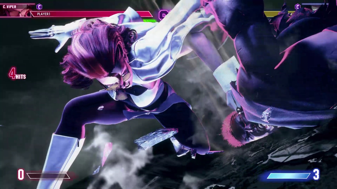 接近戦では発生の早いしゃがみ弱P、ガードさせて有利になる立ち中Pを主軸にして攻めていこう。立ち中Pヒット時はしゃがみ中P>セービングフォース、しゃがみ弱Pヒット時はしゃがみ弱P>立ち弱K>強サンダースラップ~トレースコンビネーションまで決めれば起き攻めがループする。起き攻めは立ち中P、下段のしゃがみ弱K、投げ重ねを使い分けておけば問題なし。画面端まで運べればヴァイパーには柔道があるので爆発力が一気に上がる。前投げから1歩歩いて投げとシミーで二択をかけよう。