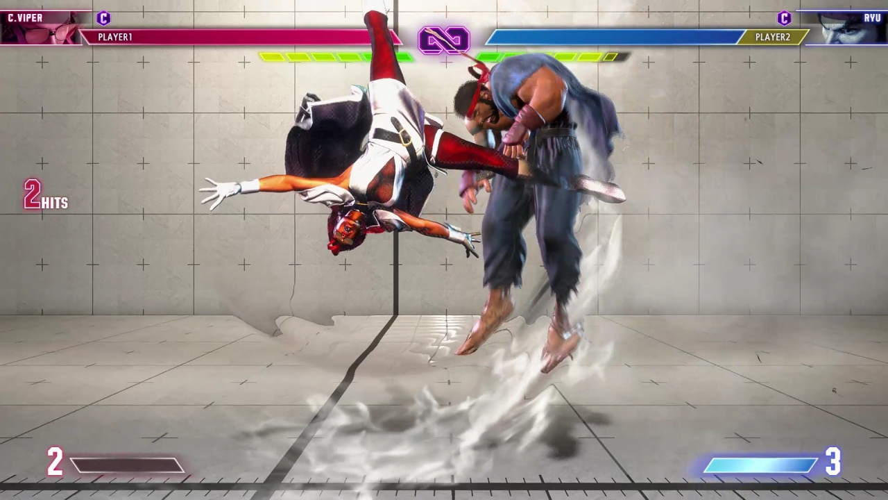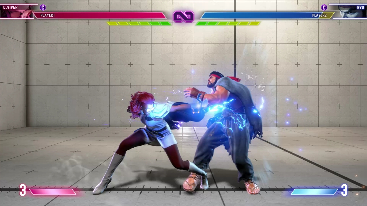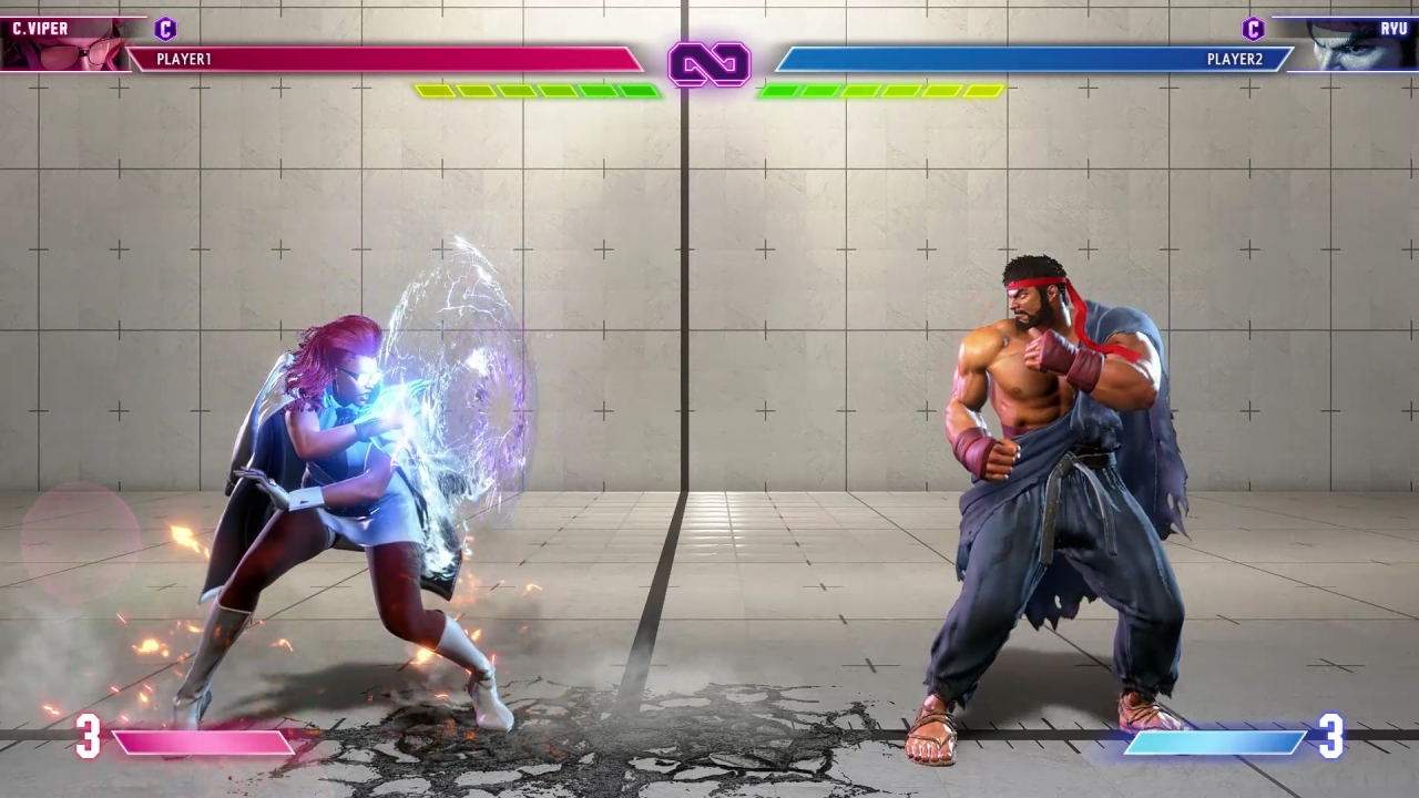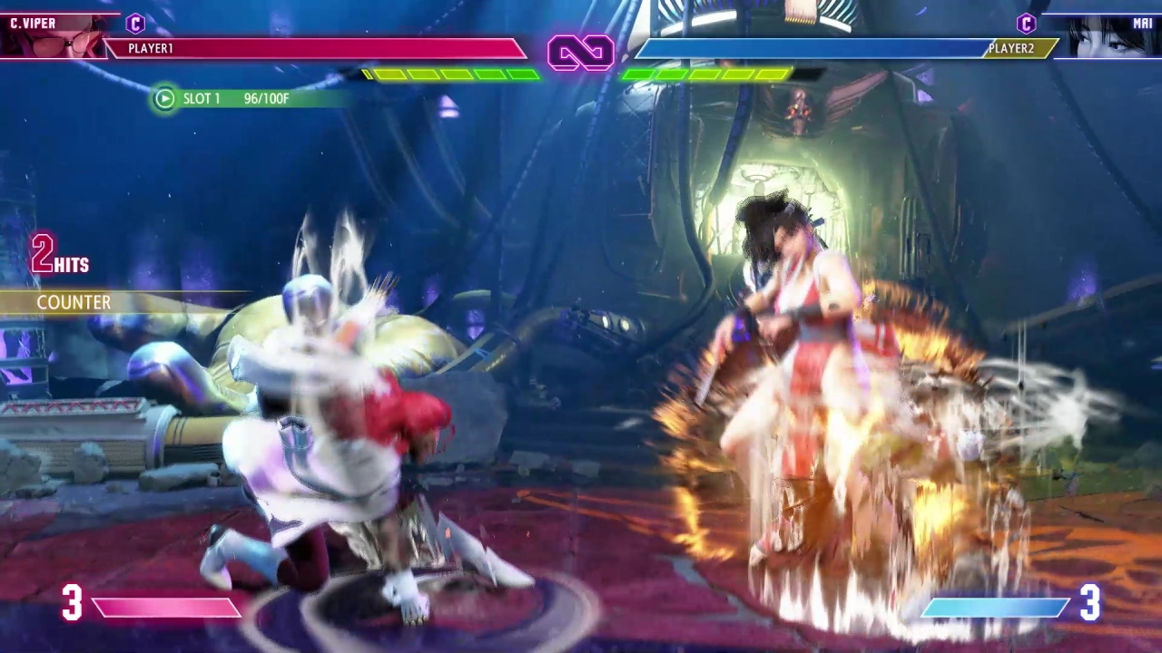 接近戦では発生の早いしゃがみ弱P、ガードさせて有利になる立ち中Pを主軸にして攻めていこう。立ち中Pヒット時はしゃがみ中P>セービングフォース、しゃがみ弱Pヒット時はしゃがみ弱P>立ち弱K>強サンダースラップ~トレースコンビネーションまで決めれば起き攻めがループする。起き攻めは立ち中P、下段のしゃがみ弱K、投げ重ねを使い分けておけば問題なし。画面端まで運べればヴァイパーには柔道があるので爆発力が一気に上がる。前投げから1歩歩いて投げとシミーで二択をかけよう。