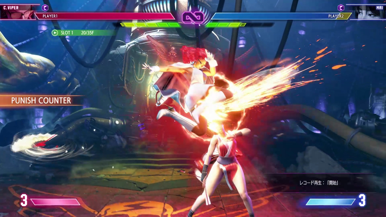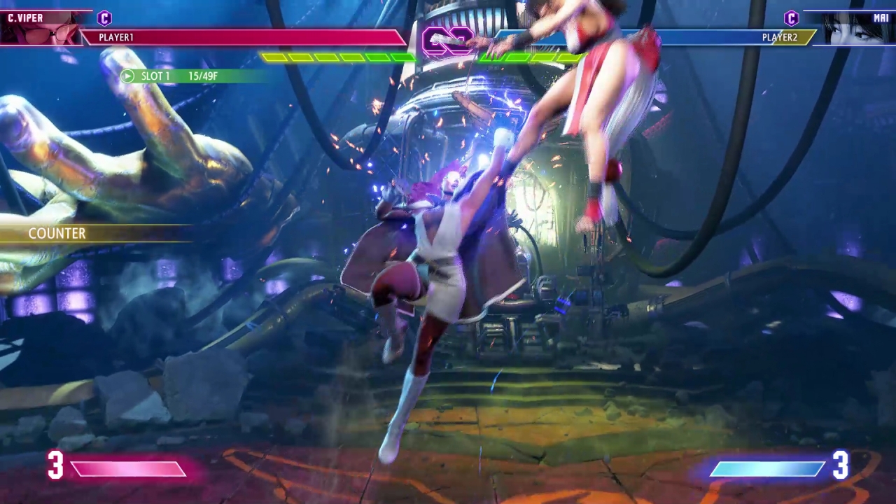 発生8Fかつ無敵があるだけでありがたいSA1。ヒット後はSAゲージが専用ゲージとなりハイジャンプが使い放題になるためヴァイパーが最優先で当てたい技。が、SAゲージも溜まらなくなるためガードされると試合が終わる。