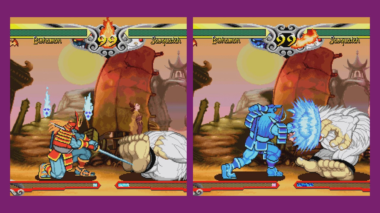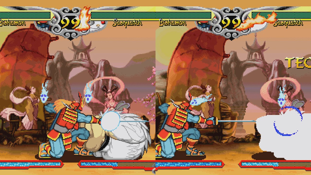 ▲相手の攻撃を「押し返す」性能を持つアドバンシングガード。『ヴァンパイアセイヴァー』の近距離の攻防において非常に重要なシステムだ。